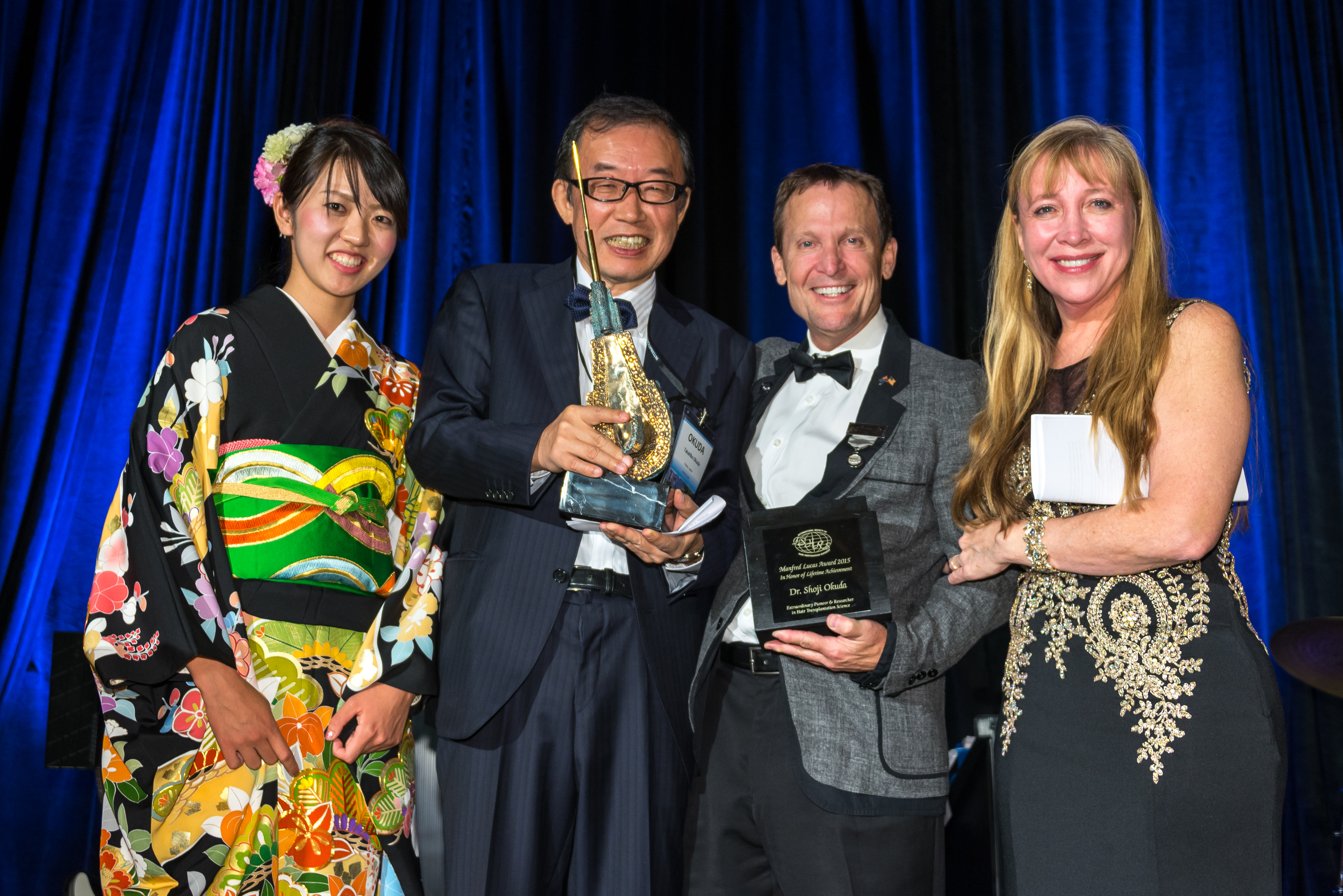 L to R: Yumi Okuda, Takahiko Okuda, Dow Stough-ISHRS Founder, Sharon Keene-2014-15 ISHRS President